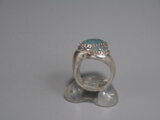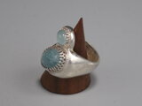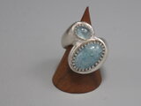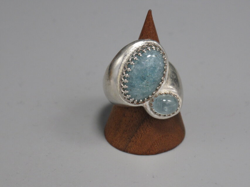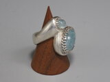 このリングには、アクアマリンキャッツアイとブルークォーツが配置されています。