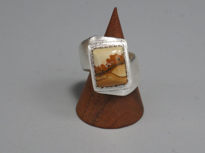 届きました。ありがとうございました。2つともとても素敵なリングです。フォッシルは黄色い花びらが散っているようで、ブルーの方は深い宇宙が広がっているようで、どちらも個性的な色とデザインで気に入りました。身につけるとキュンとして楽しくなります。本当にありがとうございました。