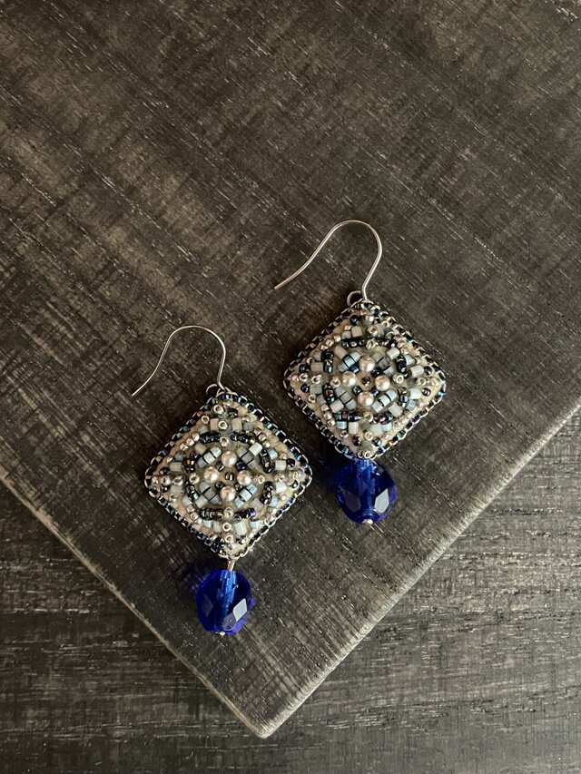ブルーのビーズを組合せてアンティークな雰囲気に仕上げました