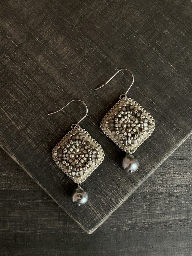 グレーのビーズを組合せてアンティークな雰囲気に仕上げました