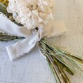 束ねた枝元には、白の紫陽花を添えて