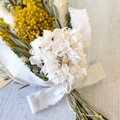 花材:ミモザ・ユーカリ・アジサイ・ラークスパー