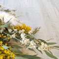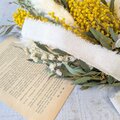 ミモザとユーカリに、白の花材をたシンプルなスワッグです。