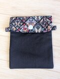 黒いポーチ部分に、黒地の繊細で華やかなクラシカルな花柄のフラップをを合わせた