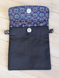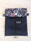 表地は黒地、フラップ地ともに綿ブロード。クタッとした柔らかさを出したかったので、芯地は柔らかな布製を使用しています。