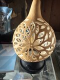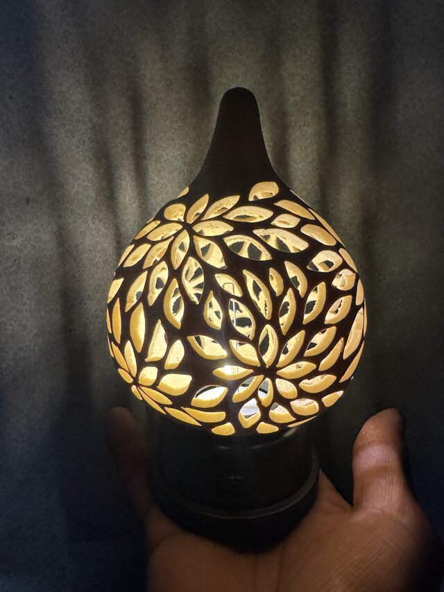 むじな菊柄を丁寧に彫り込んだ和モダンなランプです。
