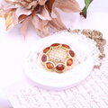 アンバーカラーのカボションパーツと、中央に敷き詰められたクリアラインストーンが印象的なフラワーモチーフデザインです。