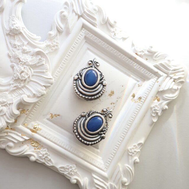 【フランス買付】【Mony Art 】ブルーカボションイヤリング *Italian Vintage Elegance 1980s