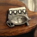シェットランドウール100%の毛糸でペンギンを編み込んだ巾着です。