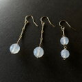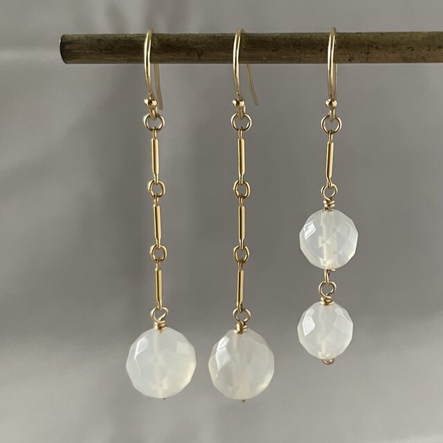光をリレーする ✧ 14kgf ホワイトカルセドニー 2Wayピアス|シンメトリー⇄アシンメトリー