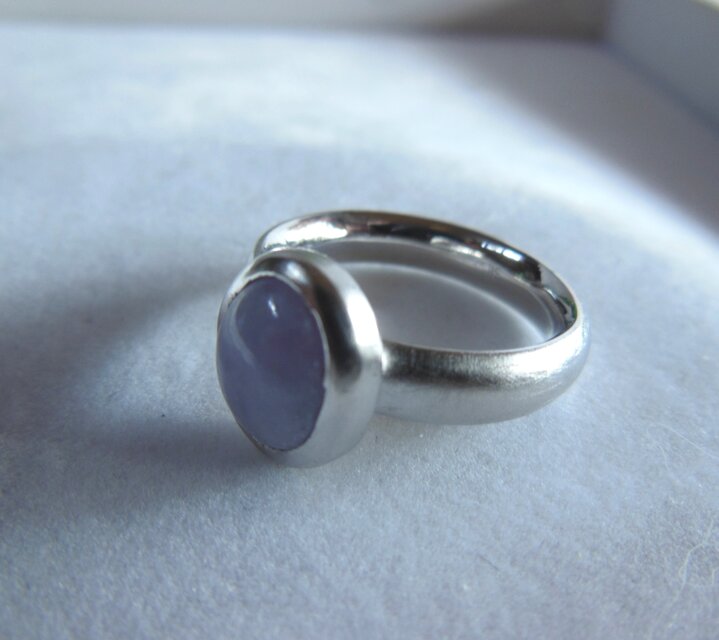 ラベンダーヒスイのシンプルなカボションリングです。表面はマット仕上げにしてあります。