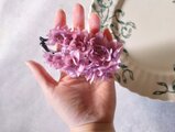 デルフィニウムの花びらの形が美しいことから、ぜひヘアーアクセサリーにしたいと考え、今回のバナナクリップが完成しました。