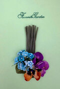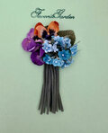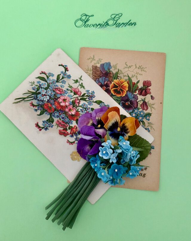 ブルーの濃淡で染めたビロードの勿忘草とパンジーを束ねた可愛いコサージュです。
