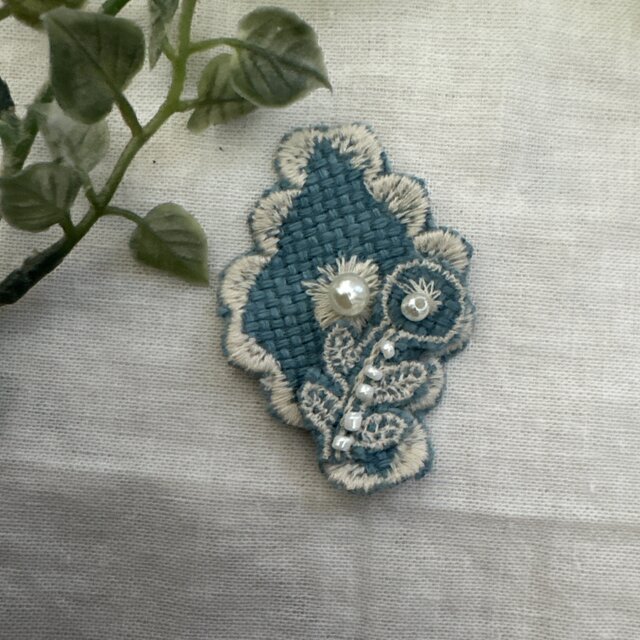 ミナペルホネンの刺繍生地でお作りしたハンドメイドのブローチです