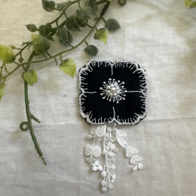 ミナペルホネンの刺繍生地でお作りしたハンドメイドのブローチです