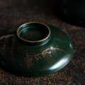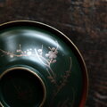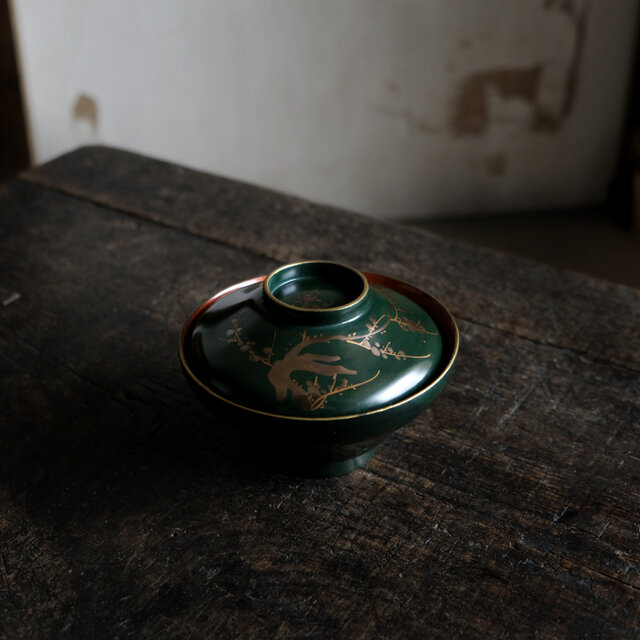 梅と鳥◆深緑で素敵。時代物 漆芸蒔絵蓋付椀 古漆器 骨董・antiques 古道具 幕末〜明治【捲れ有り】i2