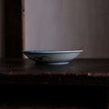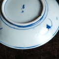 素朴な風景図◆側面に蝙蝠。瀬戸焼 染付中皿 骨董・antiques 古民家 大正期