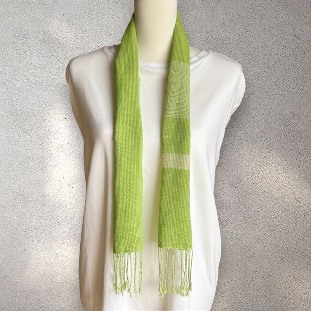 春夏シーズンのお出かけにも使えますし、冬に室内で首元が少し寒い時にも使えます。