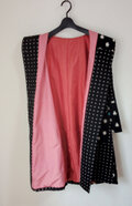 ウールの着物の絣柄が気に入って作りました。2種類を使っています。裏は着物の八掛3枚分を使いました。滑りは良いです。サイズは型紙Mサイズで作りました。