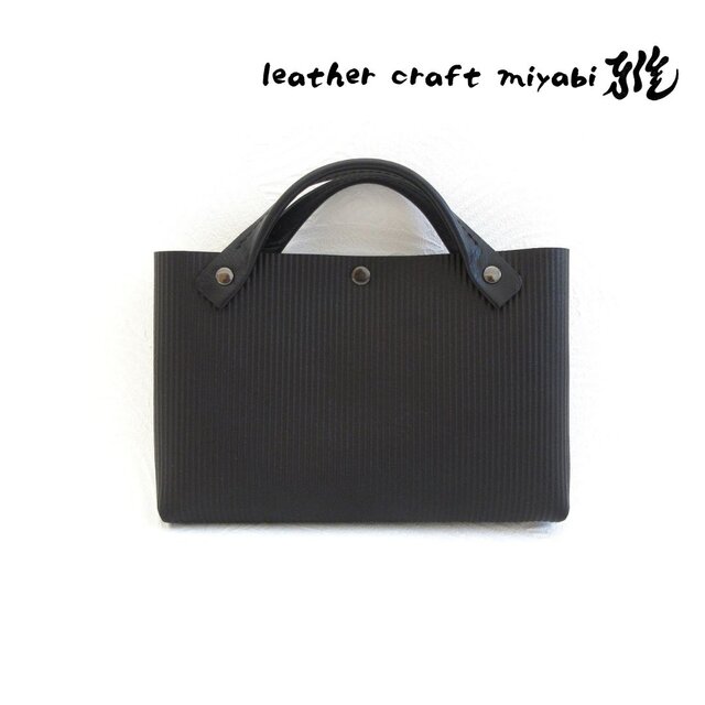 〇弾力がある手触りのブラックのエンボスに滑らかなスムースレザーのハンドルを合わせました♪