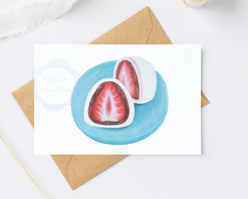 いちご大福を水彩タッチで描きました