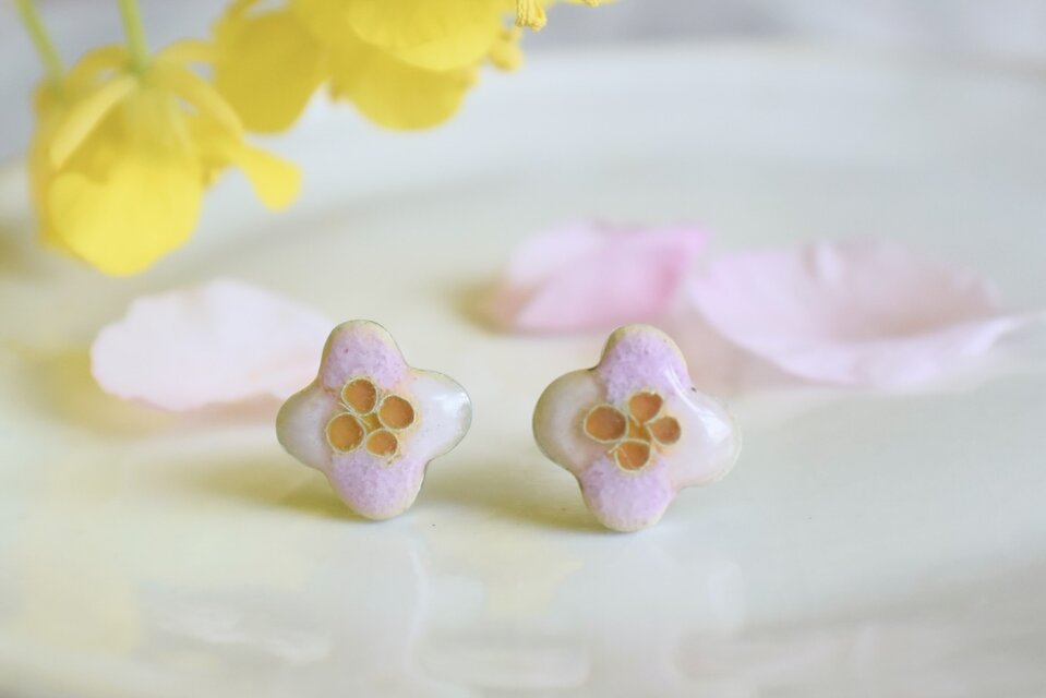 有線七宝の技法で仕立てた、小さなお花のピアスです。