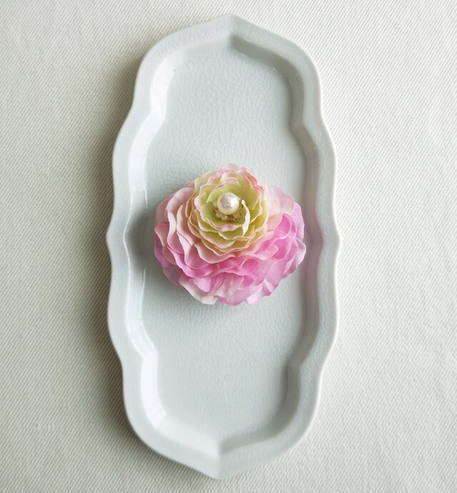 コットンパールの周りに、ピンクの花びらをゆらゆらと配しました。