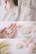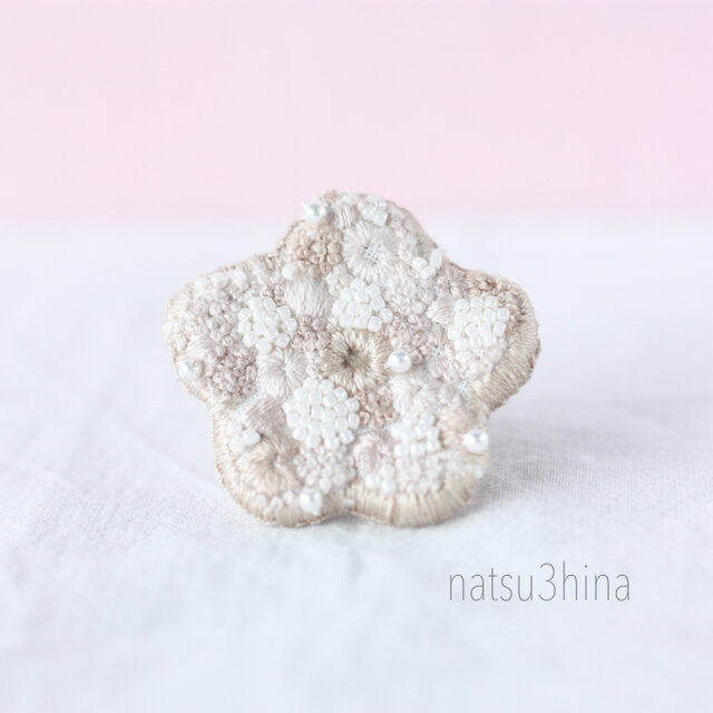 春色の糸で、一針ずつ手刺繍で仕立てた花のブローチです。