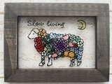 英語で「slow living(ゆったりと心豊かに過ごすライフスタイルのこと)と描きました。