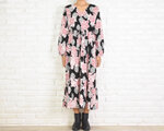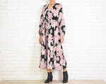 オリエンタルなフラワープリントがパッと目を惹く大人っぽくも可愛くもいろんな着こなしが出来る長袖ワンピース。
