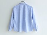 ドロップショルダーのゆったりビッグシルエットのシャツで、とてもリラックスした着心地ですが、青白ストライプ柄がきりりとした印象なので、どことなくきちんとした雰囲気もあります。
