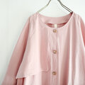 2way tuck & gather blouse (white/linen)ホワイトのブラウスであまり、特長が無いように見えるけれど、ボタンのつけかたに変化をもたせ、デザインに工夫されたところが、よかった。