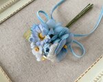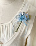 ビオラや小バラをメインにデイジーなど様々な小花を交えて花束のようにした小ぶりなコサージュ。