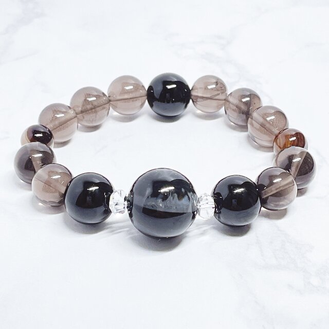 ✦1点限定✦揺るがない軸をつくる 天然石ブレスレット|天眼石・オニキス・アイスオブシディアン No.836-1
