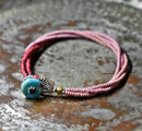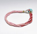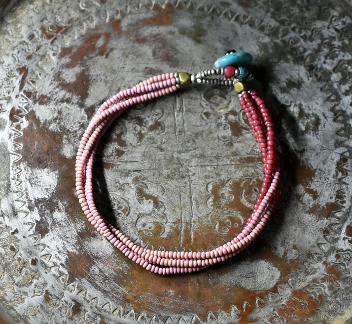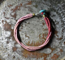 アンティークピンクマサイ、金赤ホワイトハーツの4連ブレス(ターコイズ留め金)