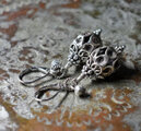 鳥かごの様なカレンシルバー、隠れアメジスト、インドシルバー鈴を繋いだピアスです。