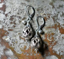 鳥かごの様なカレンシルバー、隠れアメジスト、インドシルバー鈴のピアス