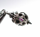 鳥かごカレンシルバーの中には、小さなカレンシルバービーズと、小さな3粒のアメジストを忍ばせています。