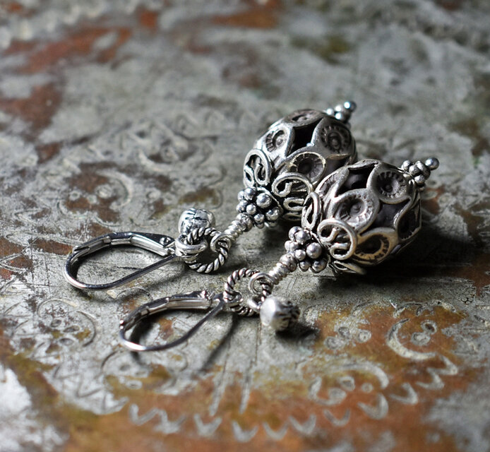 鳥かごの様なコロンとしたビーズはカレンシルバーです。