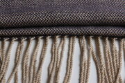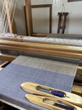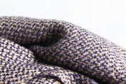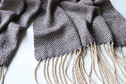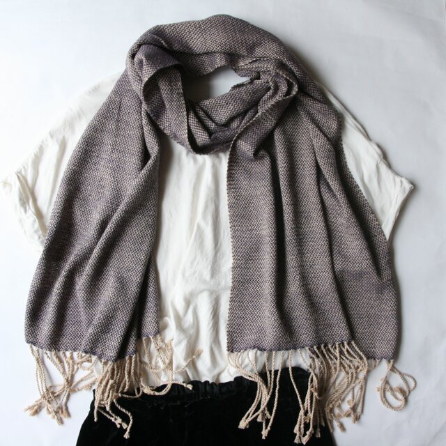 草木染では珍しいネイビー~パープルの色味が染まるログウッドをメインの緯糸に、上品な経糸(桜、小豆、棒茶)を配置しました。