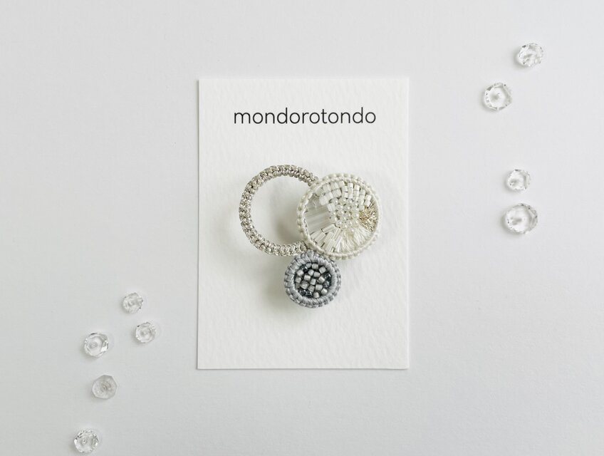 【2個セット 縁ーenー】手刺繍 軽いつけ心地のブローチ LホワイトとSシルバーb012作品が届きました。繊細な刺繡とガラスビーズ、思っていた通りステキです。 いろいろな組み合わせができそうで、楽しみです。 ありがとうございました。
