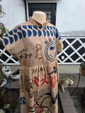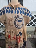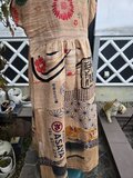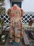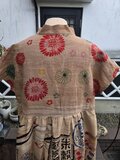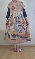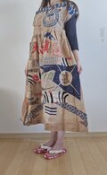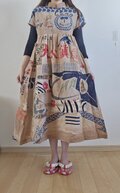 柿渋染めした手ぬぐいをパッチワークしてワンピースを作りました。