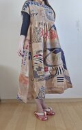 着物リメイク ハンドメイド 柿渋染め パッチワーク ワンピース