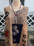 柿渋染めした手ぬぐいをパッチワークしてジャンパースカートを作りました。