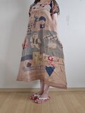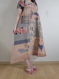 柿渋染めした手ぬぐいをパッチワークしてワンピースを作りました。