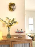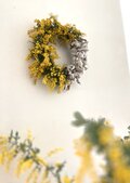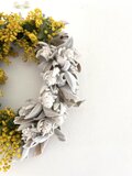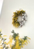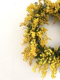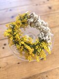 無事に受け取りました。とてもみずみずしいフレッシュなリースで、かわいいですね。実物も大満足です。とても良い香りで、葉っぱとミモザの配分も理想的で、大好きなリースになりました。また利用させていただきます。ありがとうございました!