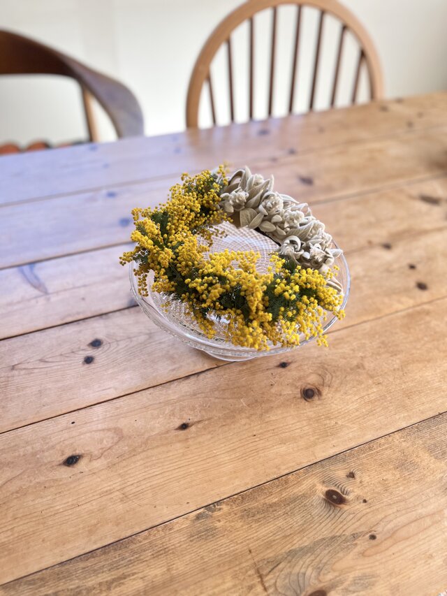 花材…ミモザ.ラムズイヤー