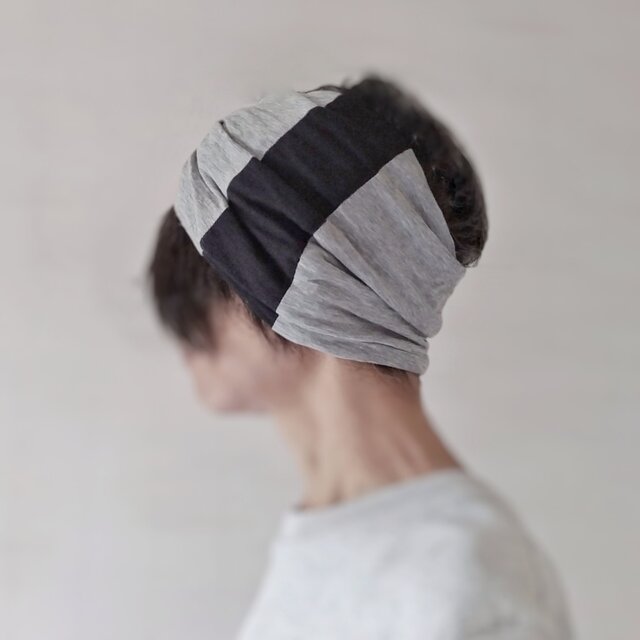 ターバンなヘアバンド グレー+ネイビー ストレッチワイド