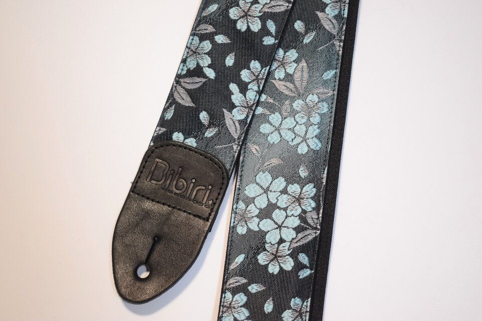 つぼみ葉桜 帆布ギターストラップ(水色)京都金襴