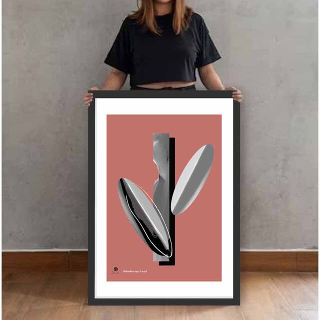 アートに仕上げたモダンリーフ おしゃれなモノトーンポスター。